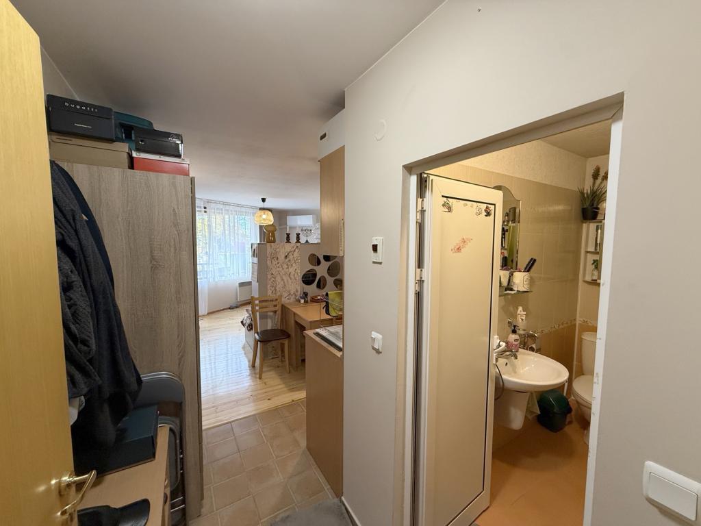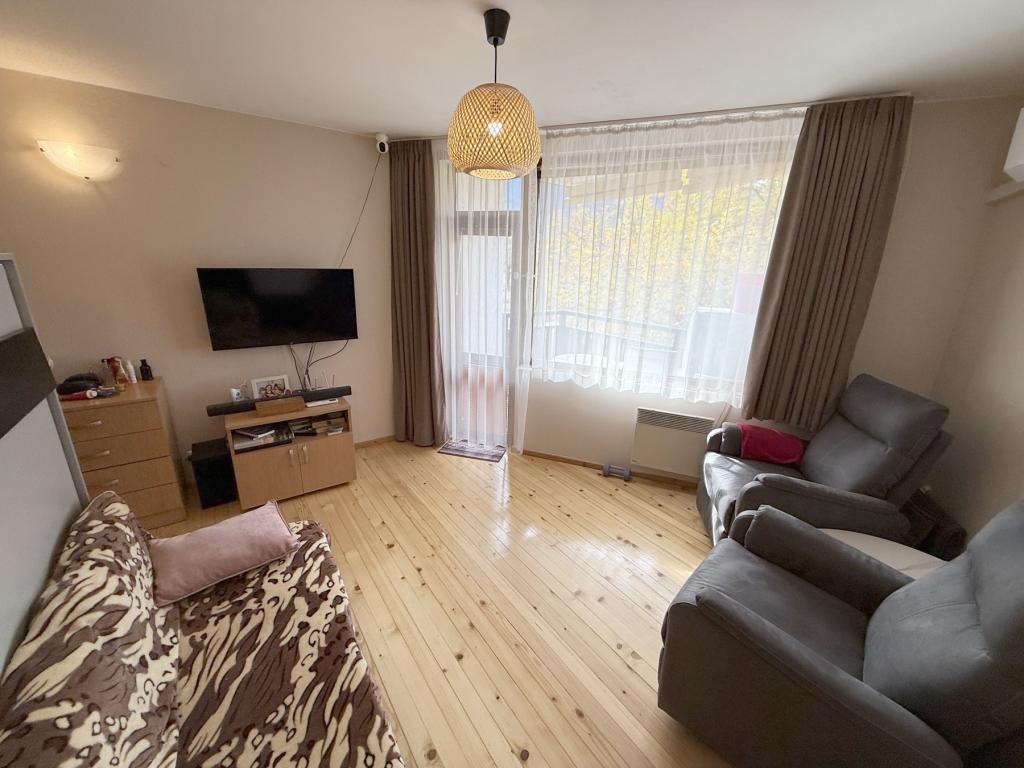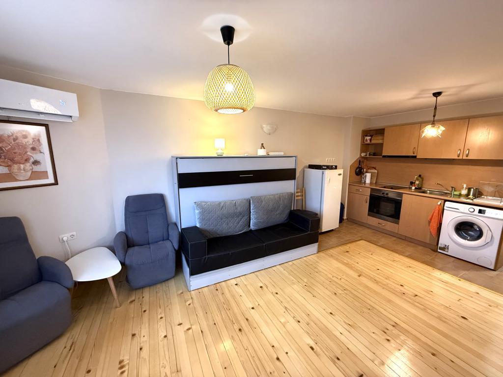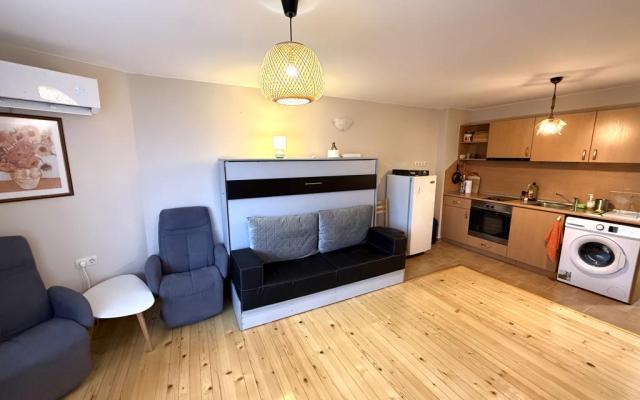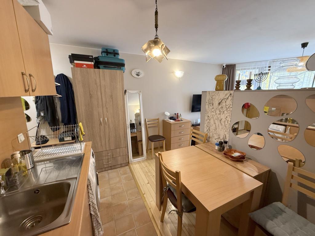 Агенция за недвижими имоти Банско Риалти има удоволствието да Ви предложи напълно обзаведено студио в жилищен комплекс Четирилистна Детелина, разположен в квартал Глазне на 1км от Гондолата. Апартаментът е разположен на четвърти етаж и предлага запдно изложение. Подходящ е за целогодишно или ваканционно ползване. Студиото е след ремонт, свежа боя, лакиран дървен под, нов климатик. Разполага с падащо легло, което в сгънато положение има функцията на диван. Таксата поддръжка е 310 евро на година и включва почистване и поддържане на общите части, асансьор, телевизия, интернет и вода. Чистата площ на апартамента е 36м2.